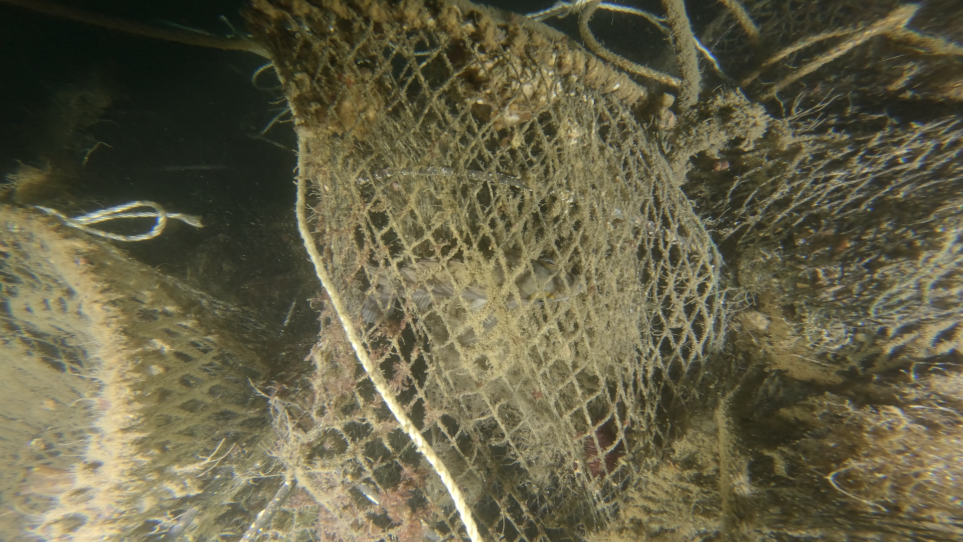 폐어구에 갇혀 서서히 활동성이 떨어지고 있는 어류의 모습을 관찰할 수 있었습니다.