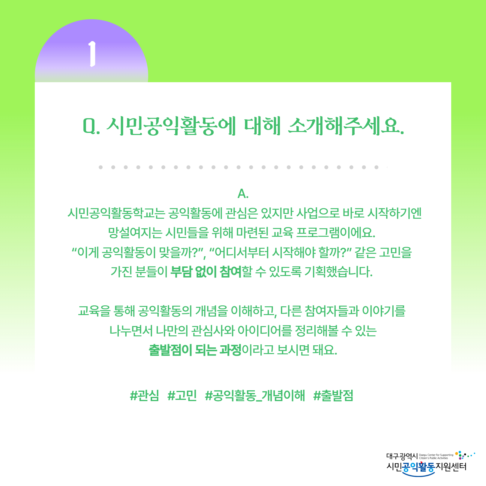 [2026년 사업 담당자 자문자답] '시민공익활동학교(시민입문)' 사업에 대해 궁금하신가요?