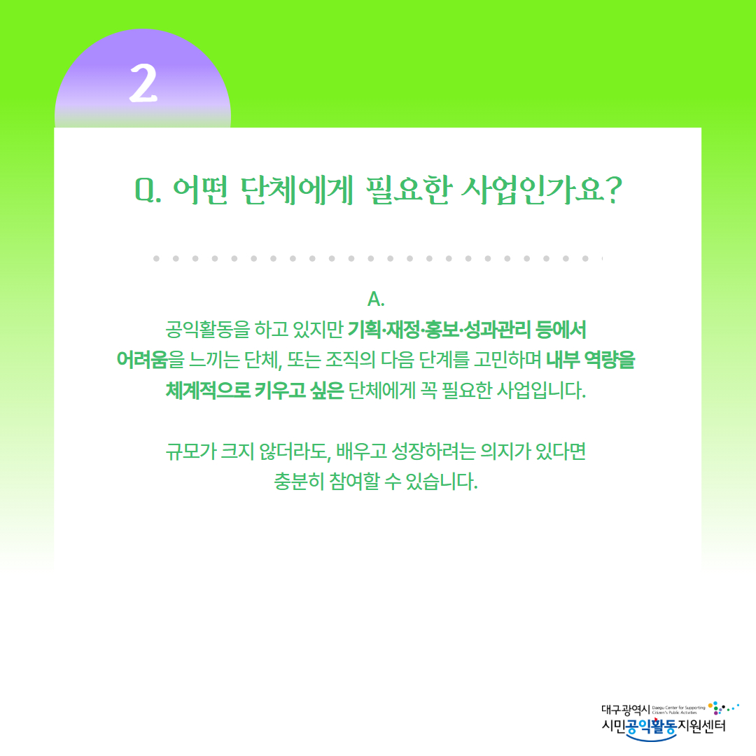2. 어떤 단체에게 필요한 사업인가요?