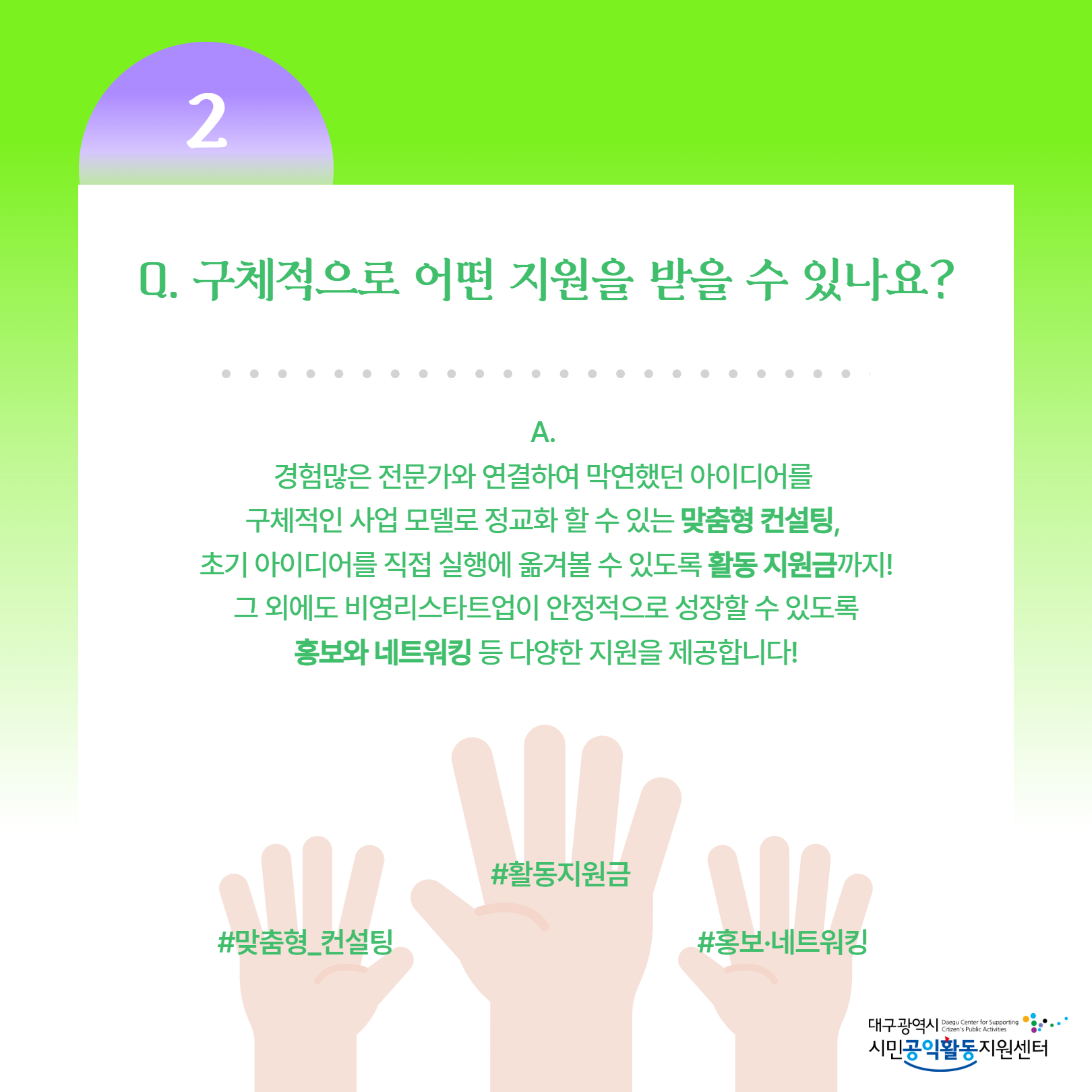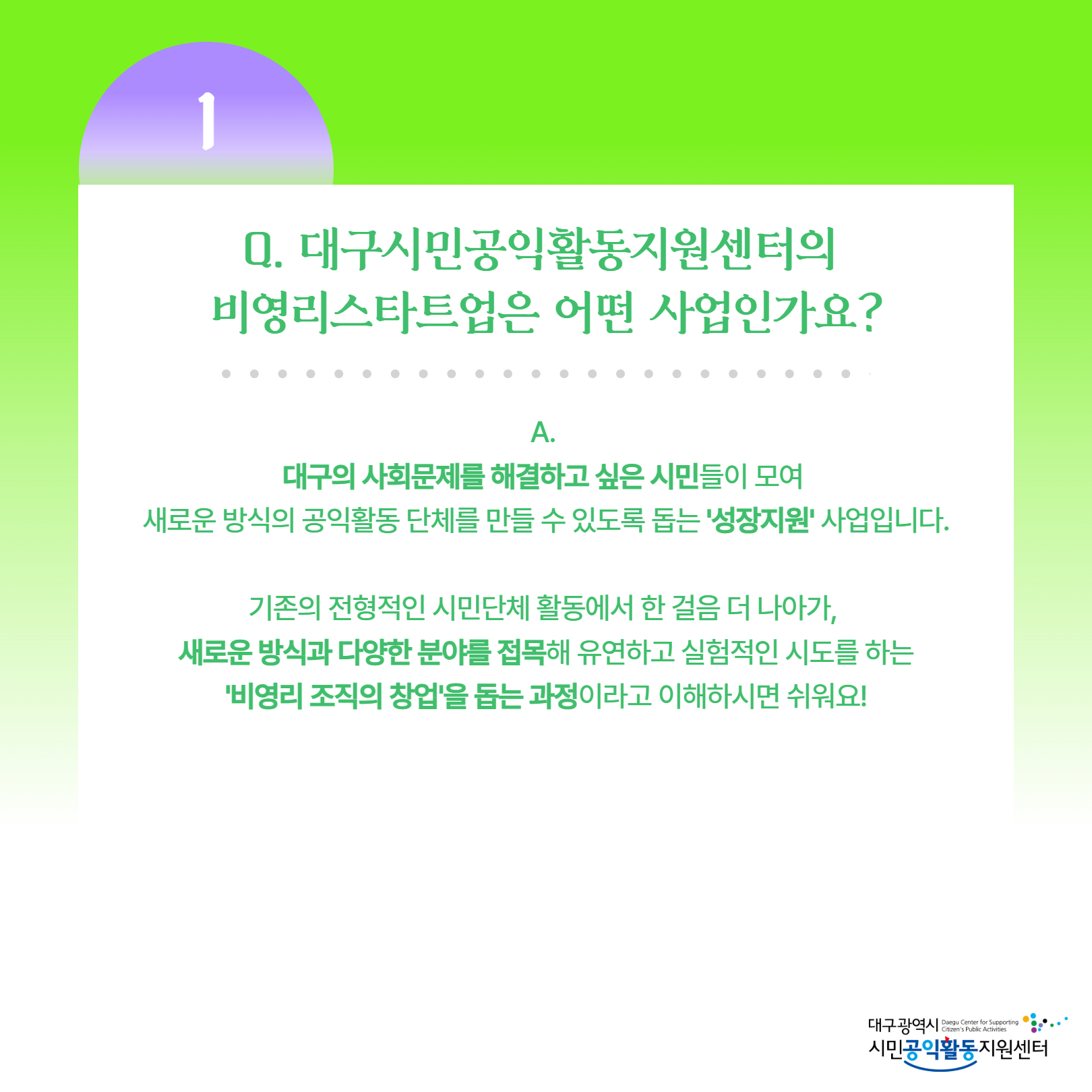 1. 대구시민공익활동지원센터의 비영리스타트업은 어떤 사업인가요?