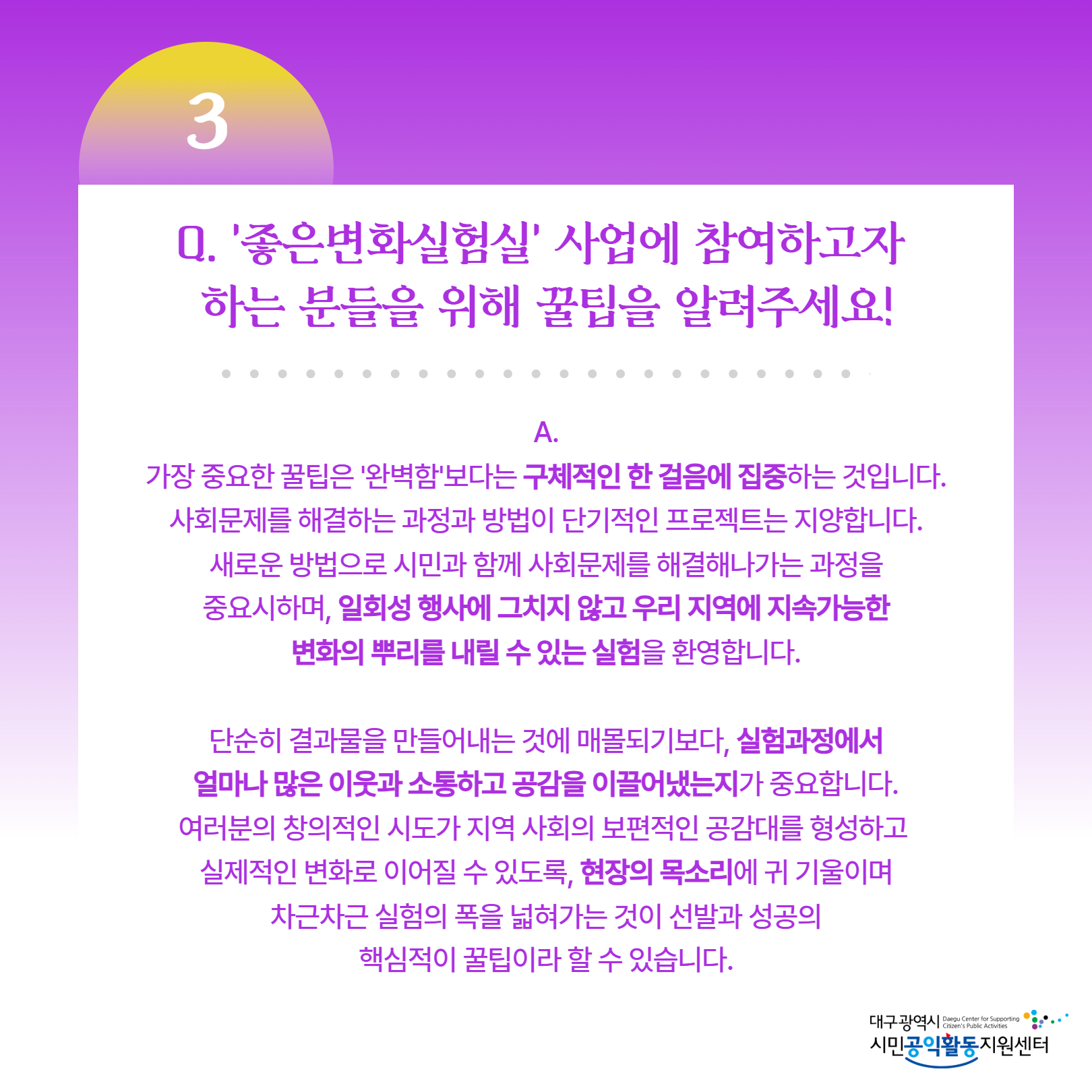 3. 좋은변화실험실 사업에 참여하고자 하는 분들을 위해 꿀팁을 알려주세요!