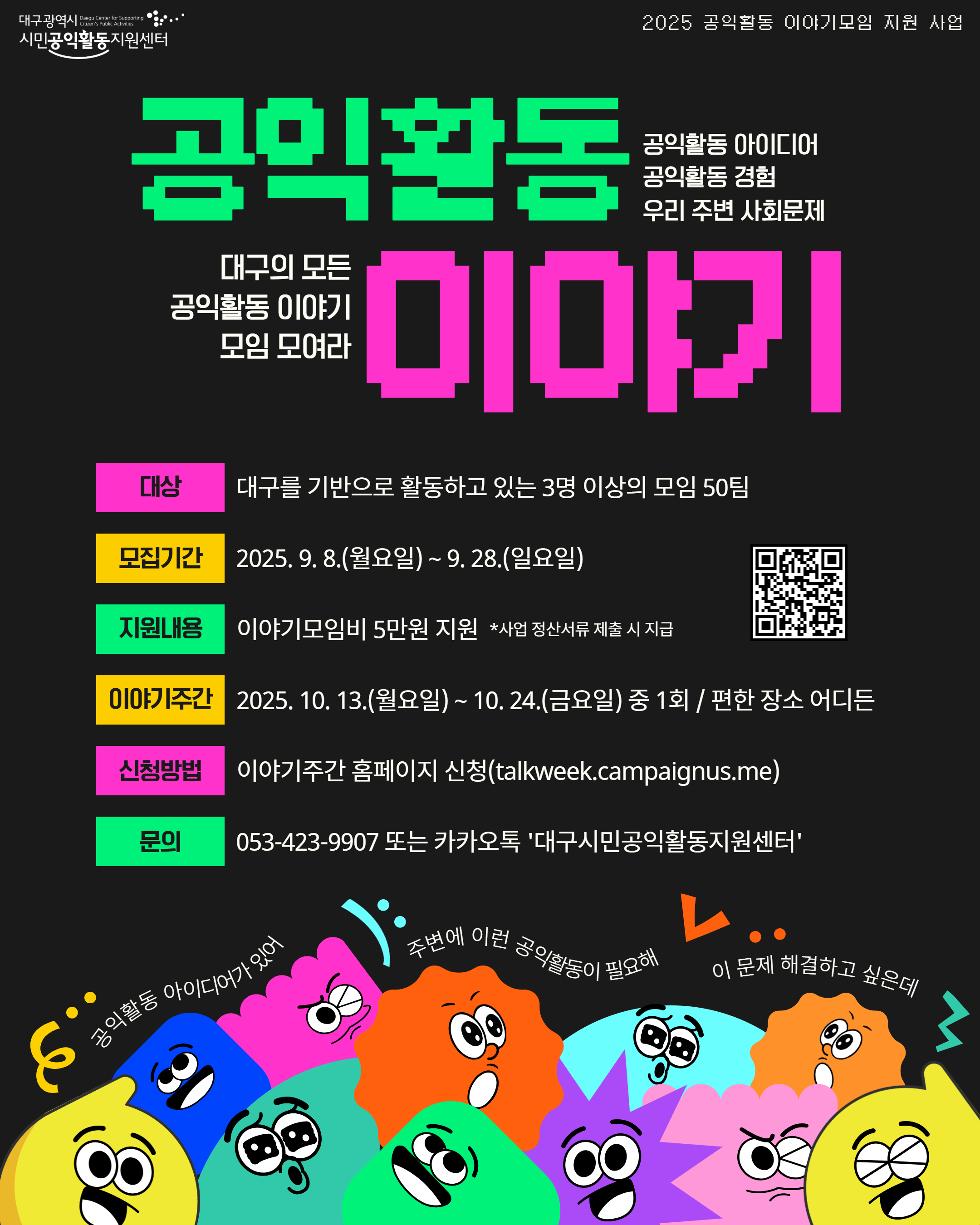 [접수완료] [모집] 2025 시민공익활동 이야기모임 50팀을 모집합니다.(~9/28 일요일까지)