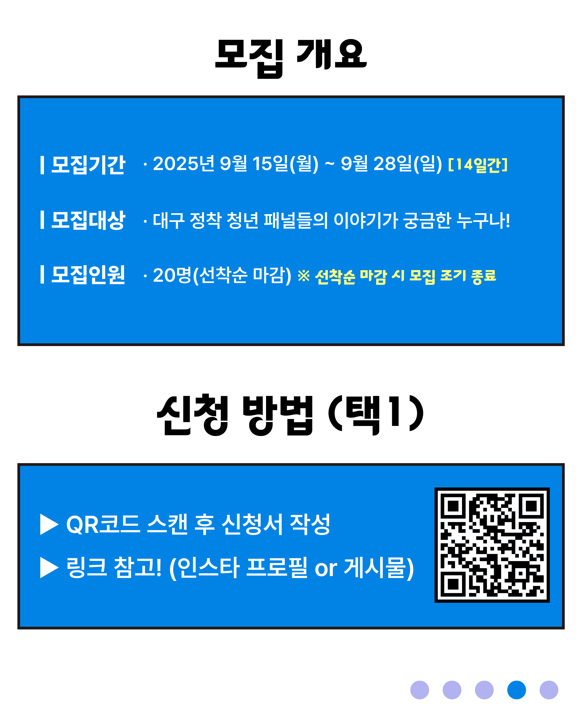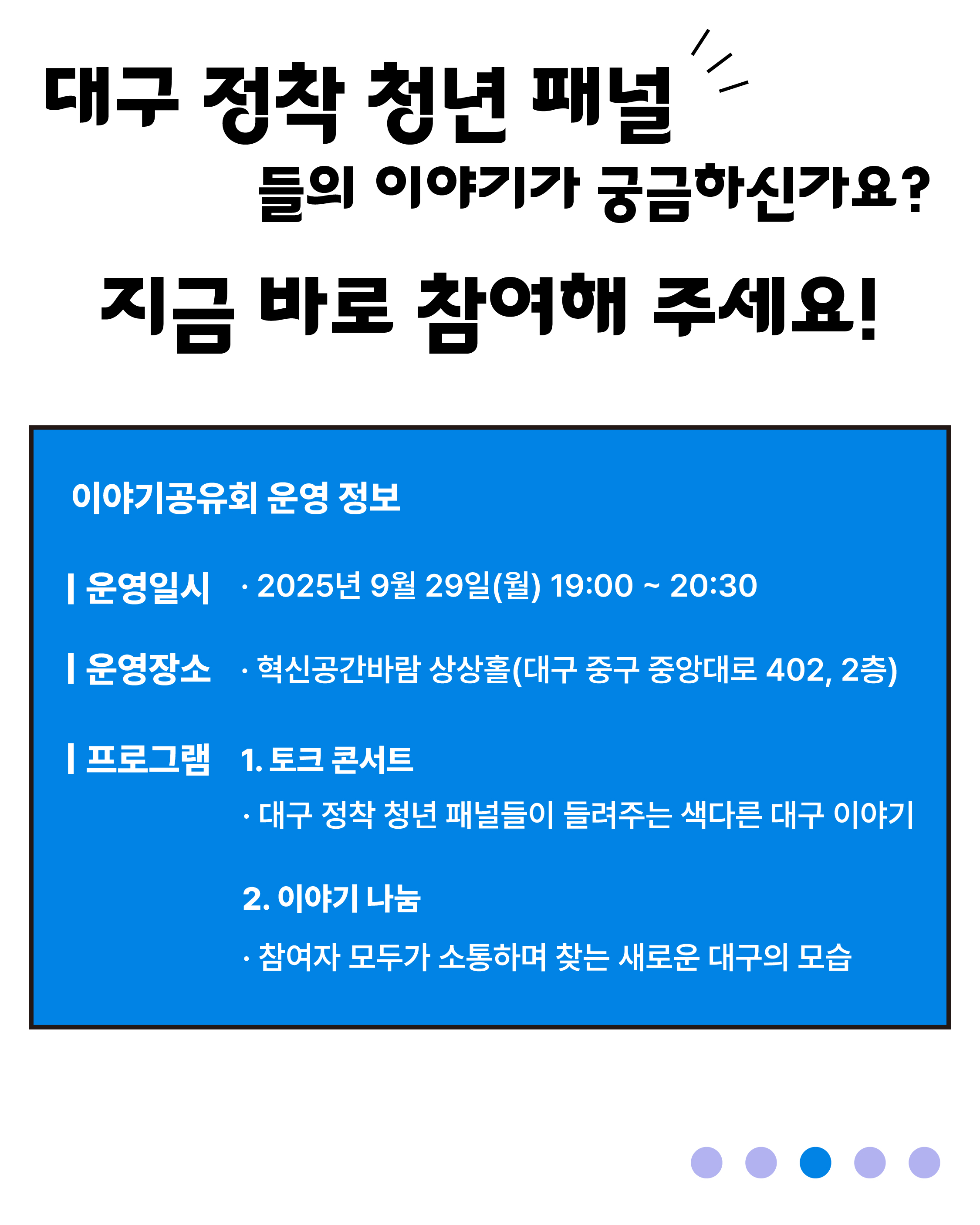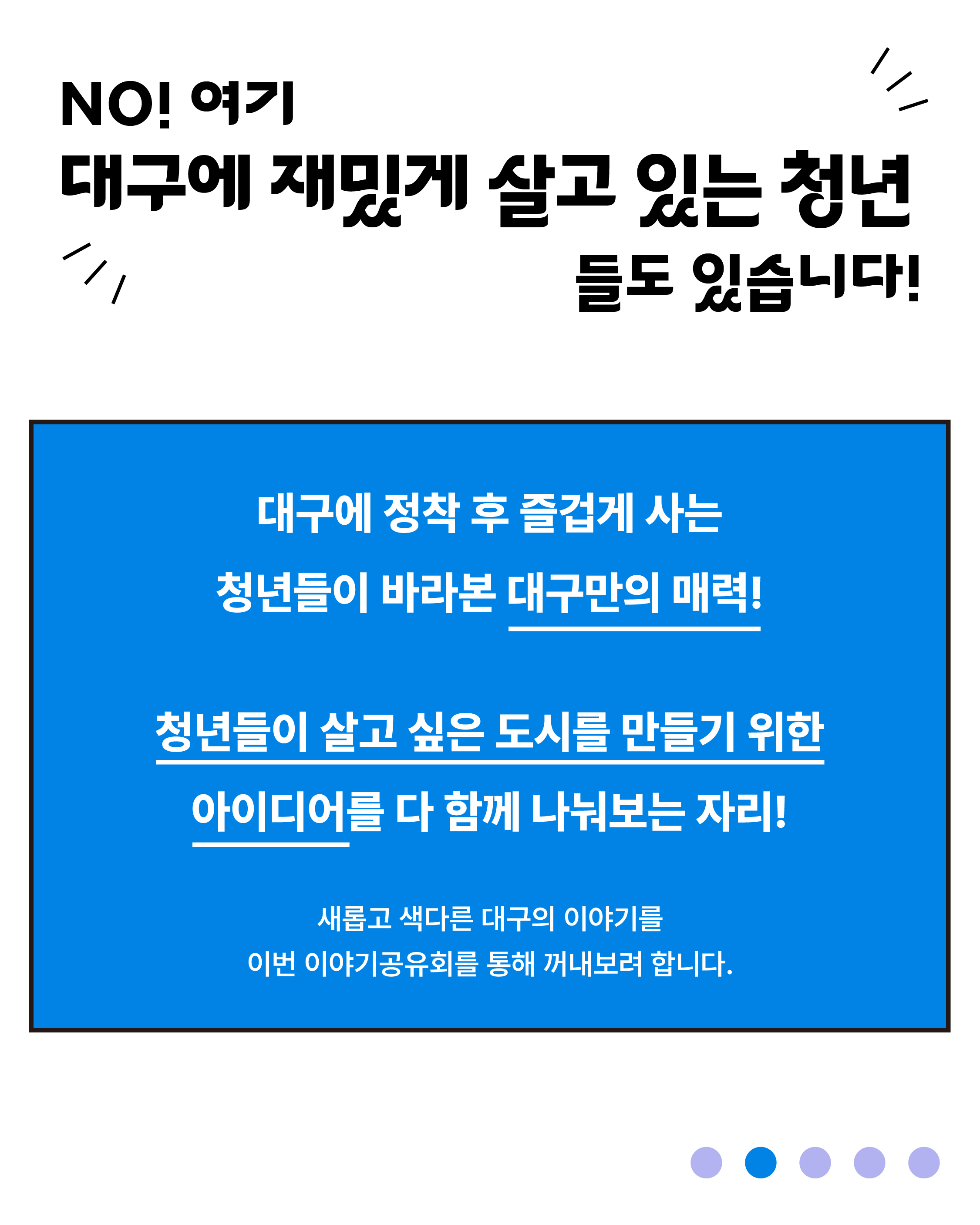 대구 정착 청년들의 이야기가 궁금하신 분들이라면 누구나 신청 가능하니 많은 참여 바랍니다.