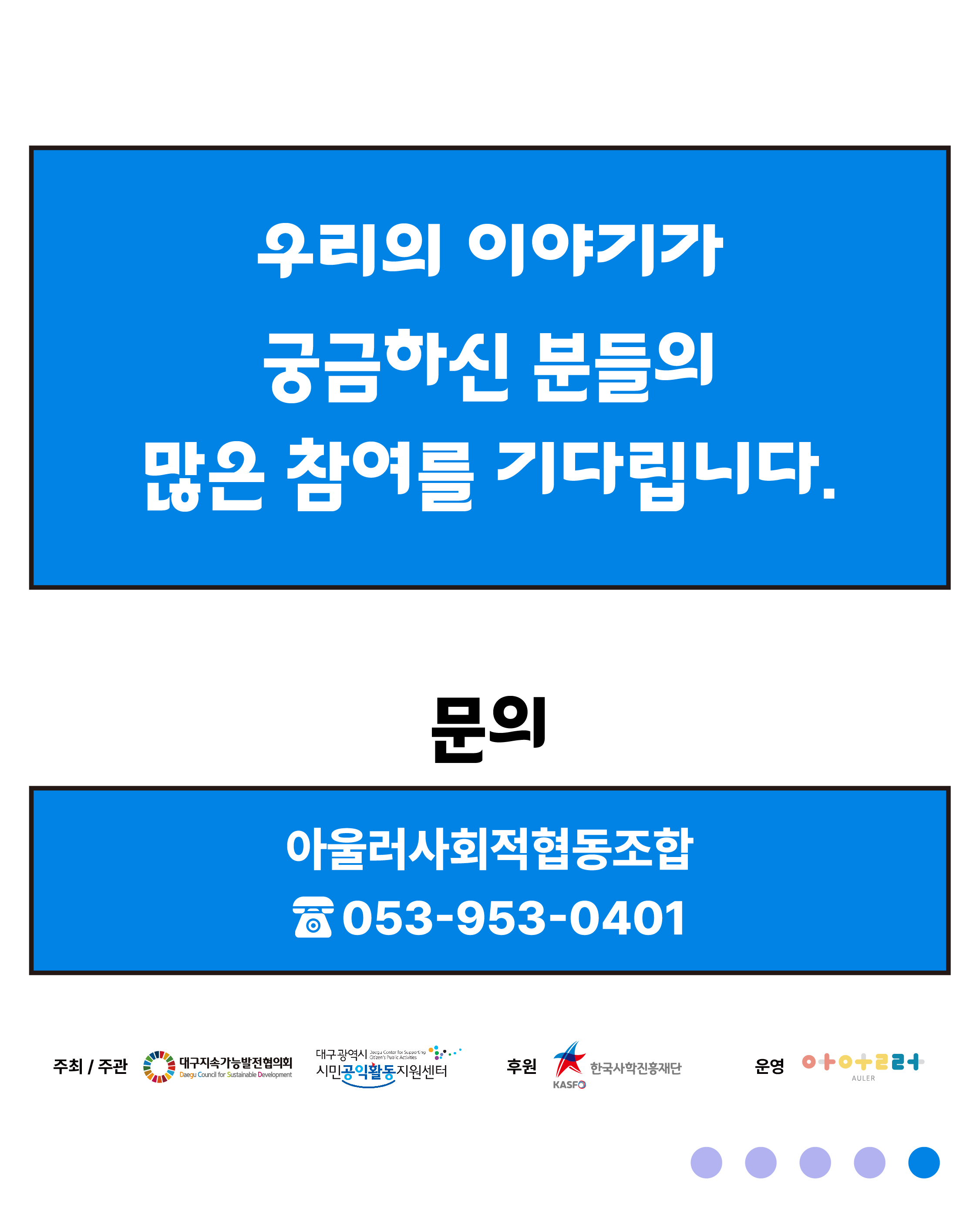◎ 관련 문의 : 아울러사회적협동조합 (053-953-0401)
