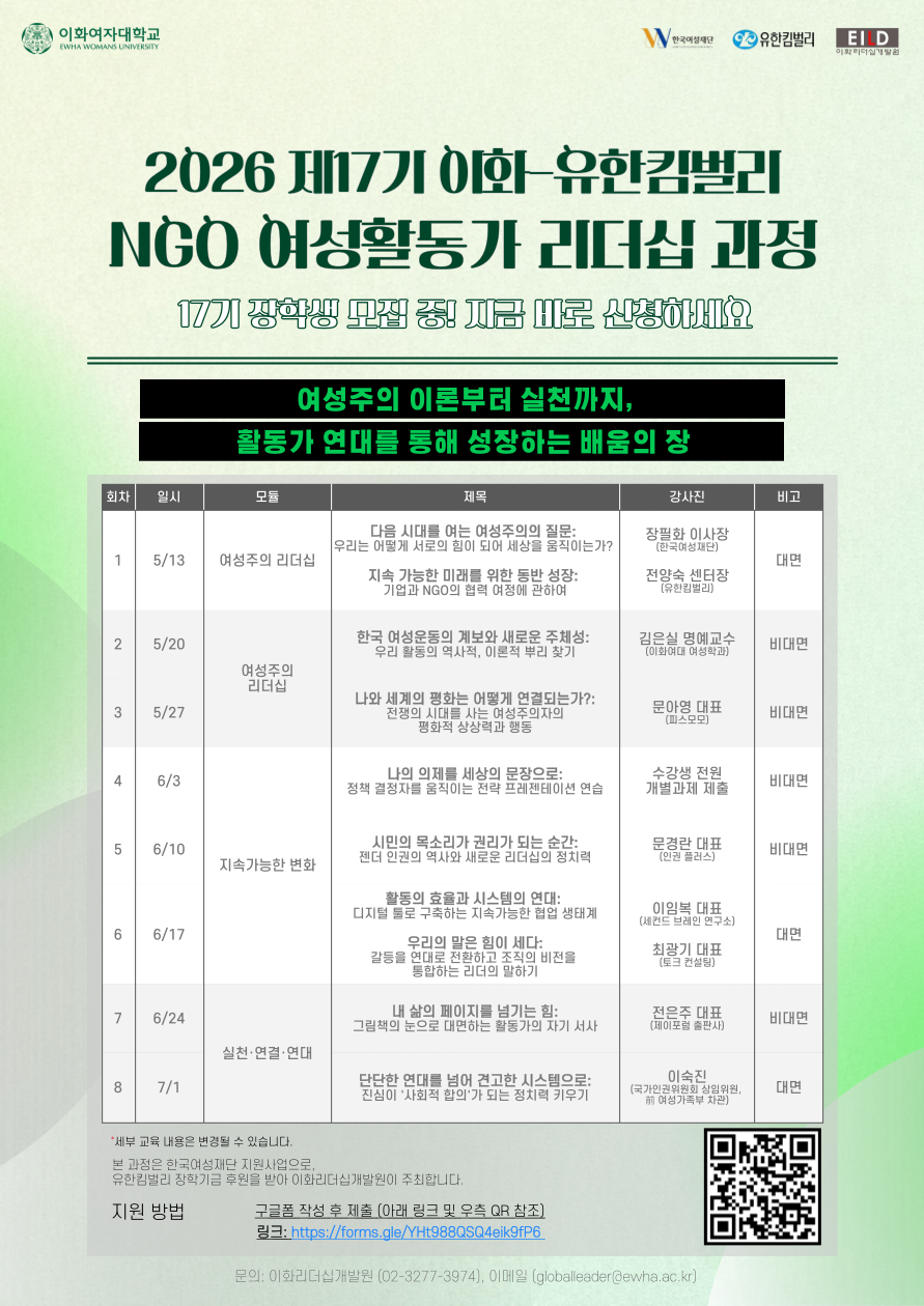 2026 제17기 이화-유한킴벌리 NGO 여성활동가 리더십 과정