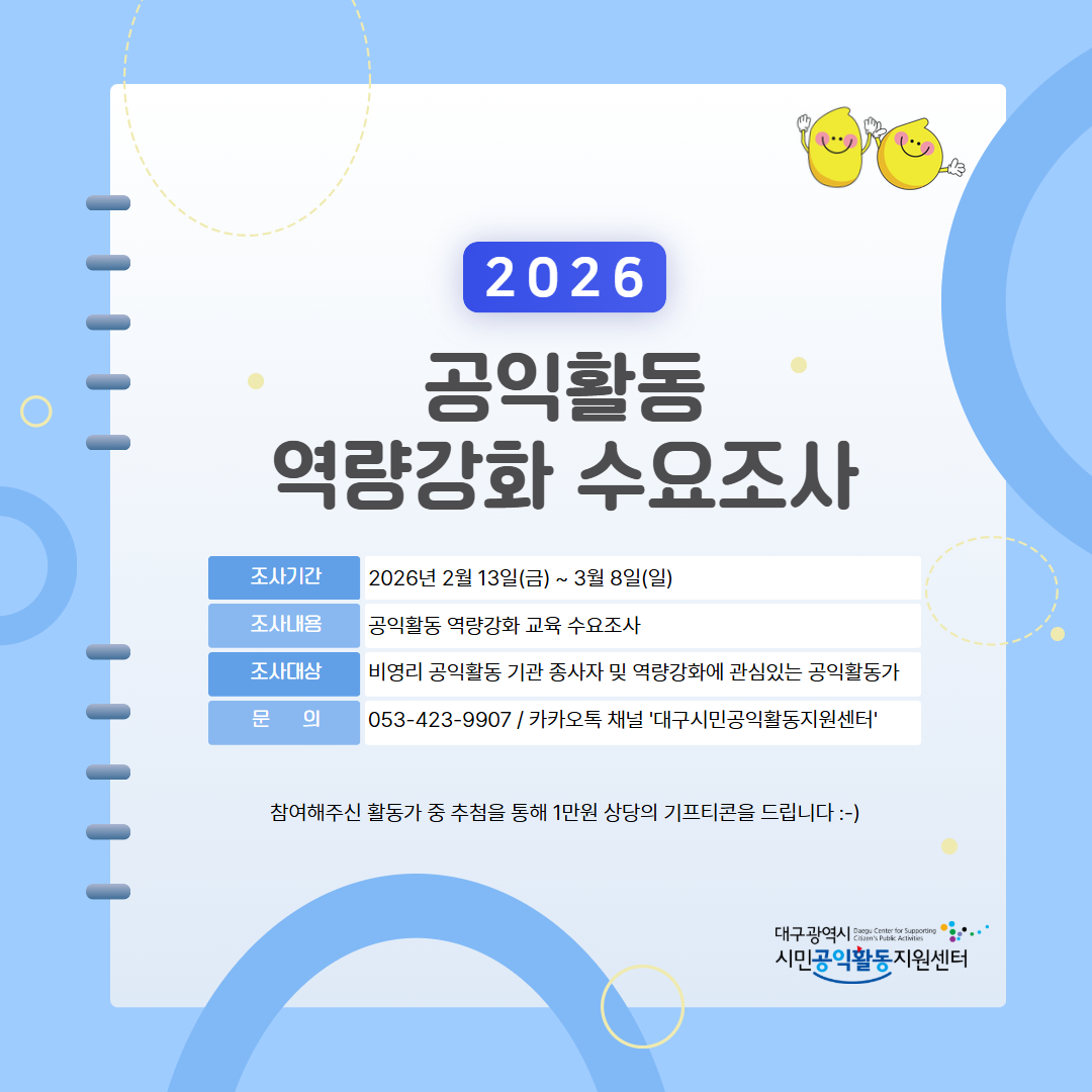 053-423-9907 또는 카카오톡채널 대구시민공익활동지원센터