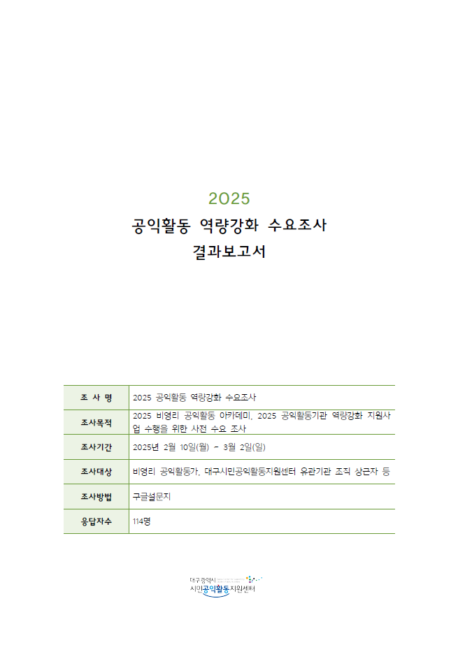 2025 공익활동 역량강화 수요조사 결과보고서입니다.