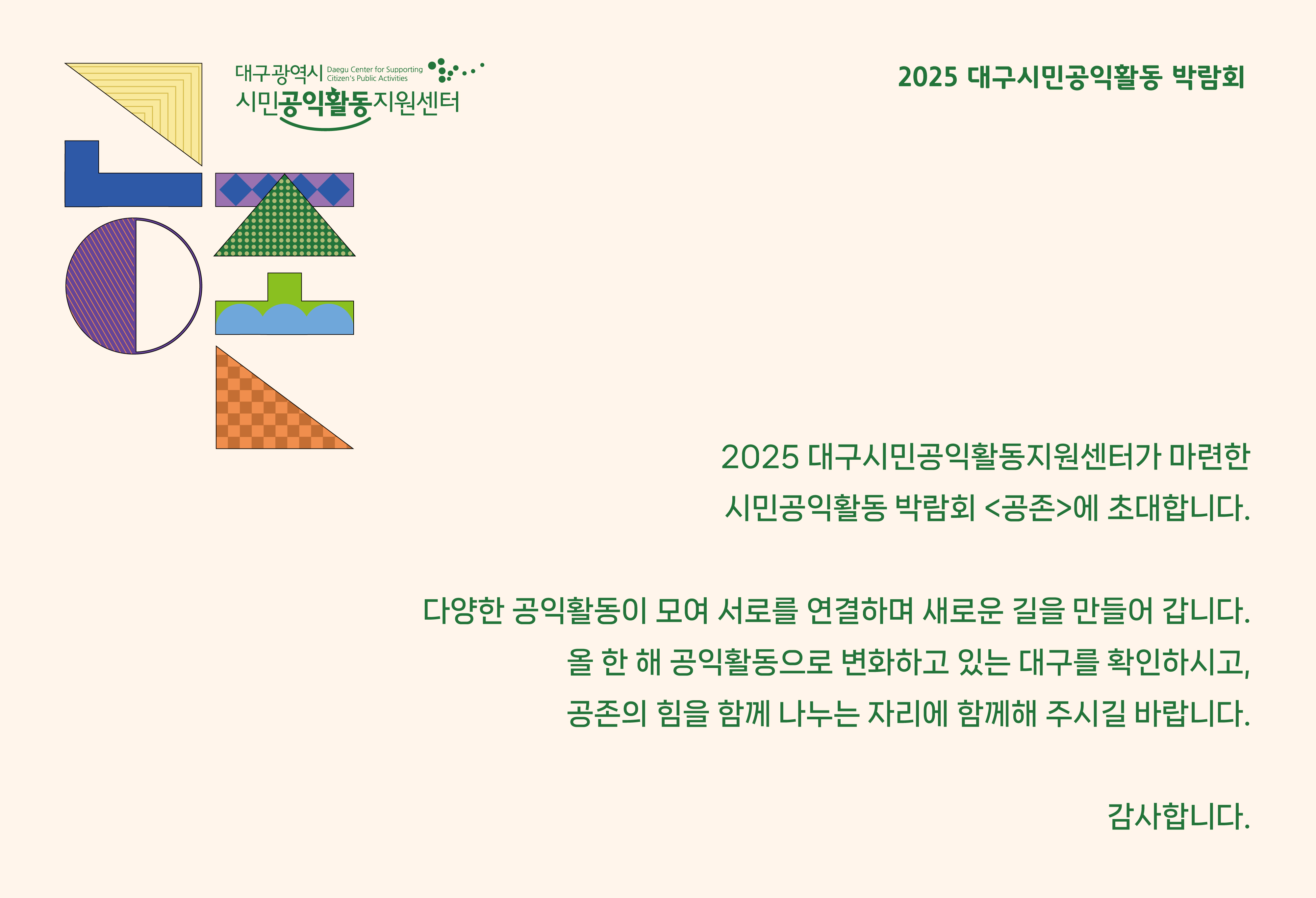 '2025 대구시민공익활동 박람회 <공존>'에 초대합니다.